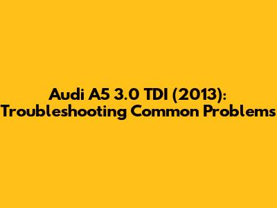 Audi A5 3.0 TDI (2013): Common Issues & Solutions