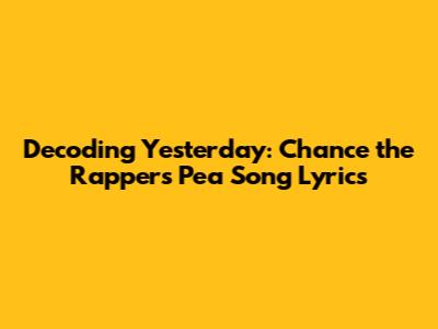 Hey music lovers! Ever found yourself vibing to a song and thinking, "What in the world are they even saying?" Well, you're not alone! Today, we're diving deep into the lyrics of Chance the Rapper's "Pea" from his project "Yesterday." Buckle up, because we're about to dissect the words, the meanings, and maybe even find some hidden gems along the way. Get ready to go on an amazing journey, guys!