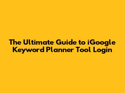 Hey there, digital marketing enthusiasts! Today, we're diving deep into something super important for anyone looking to boost their online presence: the iGoogle Keyword Planner Tool Login. If you're wondering how to get into this powerhouse of a tool, or what exactly it does, you've come to the right place, guys! We're going to break it all down, making it super easy for you to navigate and leverage its full potential. Let's get started on this epic journey to keyword mastery!