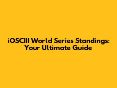 IOSCIII World Series Standings: Your Ultimate Guide