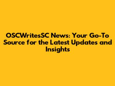 OSCWritesSC News: Latest Updates And Insights