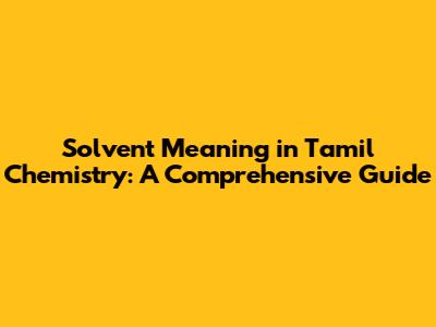 Solvent Meaning In Tamil Chemistry: A Comprehensive Guide
