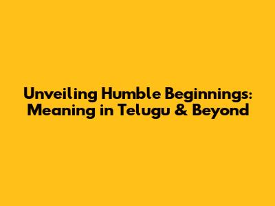 Unveiling Humble Beginnings: Meaning In Telugu & Beyond