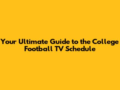 College football is a sport that brings people together. Whether you're cheering on your alma mater or just enjoying the excitement of the game, there's something special about the college football experience. Staying informed about the TV schedule allows you to share this experience with friends and family. Hosting watch parties, attending tailgates, and engaging in friendly rivalries are all part of what makes college football so unique. By planning ahead and knowing when and where to watch the games, you can create lasting memories and strengthen your connections with those around you.